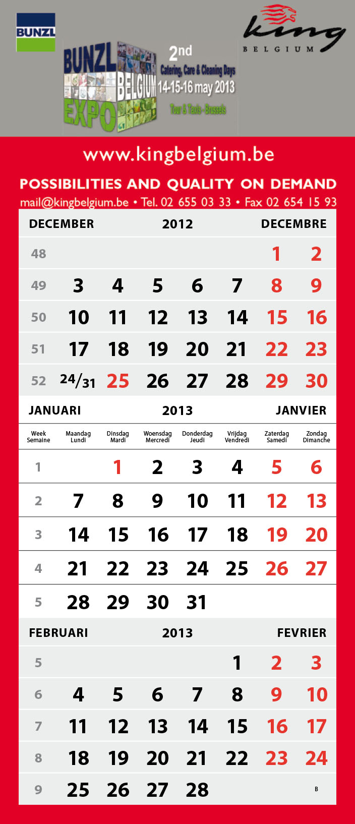 - NL/FR with BE holidays